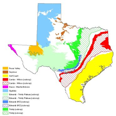 Texas has numerous aquifers capable of producing groundwater for households, municipalities, industry, farms, and ranches. The Texas Water Development Board (TWDB) recognizes 9 major aquifers − aquifers that produce large amounts of water over large areas (see major aquifers map) − and 22 minor aquifers − aquifers that produce minor amounts of water over large areas or large amounts of water over small areas (see minor aquifers map).